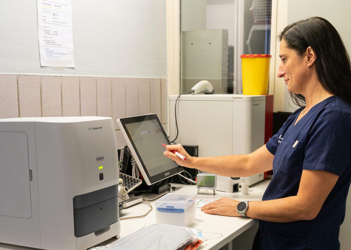 Unser Leistungsspektrum umfasst die gängigen diagnostischen und therapeutischen Angebote einer Kleintierpraxis. Zusätzlich wird unser Leistungsangebot durch Chiropraktik und einen täglichen, gut geregelten Notdienst in Rufbereitschaft bis 24 Uhr ergänzt. Durch eine Umstellung des Dienstplanes haben wir inzwischen für alle Mitarbeitenden eine gute Work-Life-Balance erreichen können. Wir verfügen über eine volldigitale Röntgenanlage, ein modernes Ultraschallgerät, Inhalationsnarkose, ein komplettes Inhouse-Labor (IDEXX Catalyst und ProCyte, Mikroskop mit Kamera und Übertragung auf Tablet) sowie ein gemütlich eingerichtetes Notdienst-Zimmer.